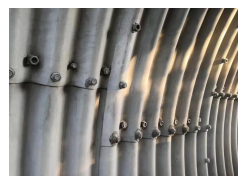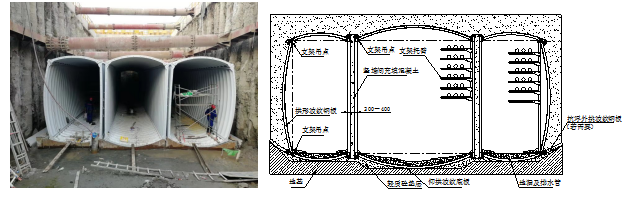 (1)、分片拼裝式波紋鋼結(jié)構(gòu),每片波紋鋼板面積只有2~3平方米,單節(jié)長(zhǎng)度沿縱向長(zhǎng)度只有1~1.5米,并且要求錯(cuò)縫拼裝,接縫多。